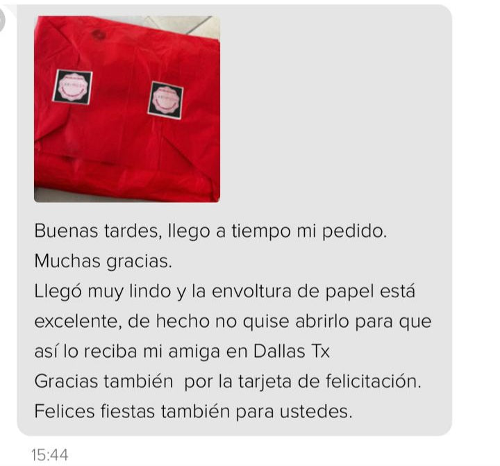 "Gracias por su hermoso trabajo y calidad. Excelente servicio, estoy muy satisfecha por mi compra"