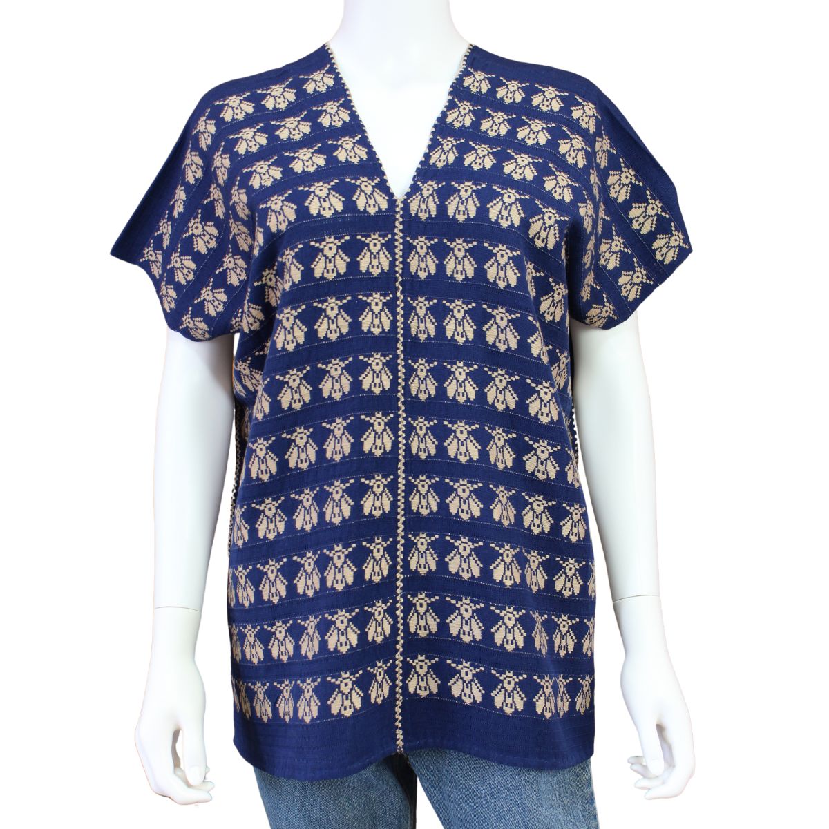 Blusa Artesanal Hecha a Mano Mod. Bio Unitalla Marino con Caqui