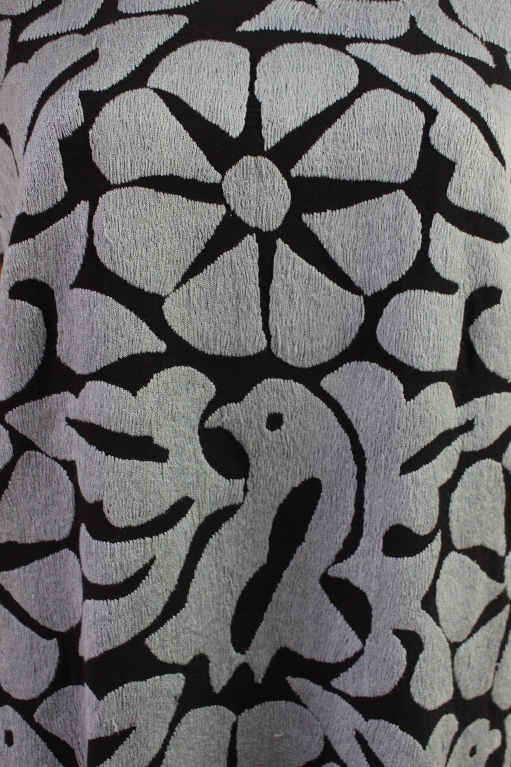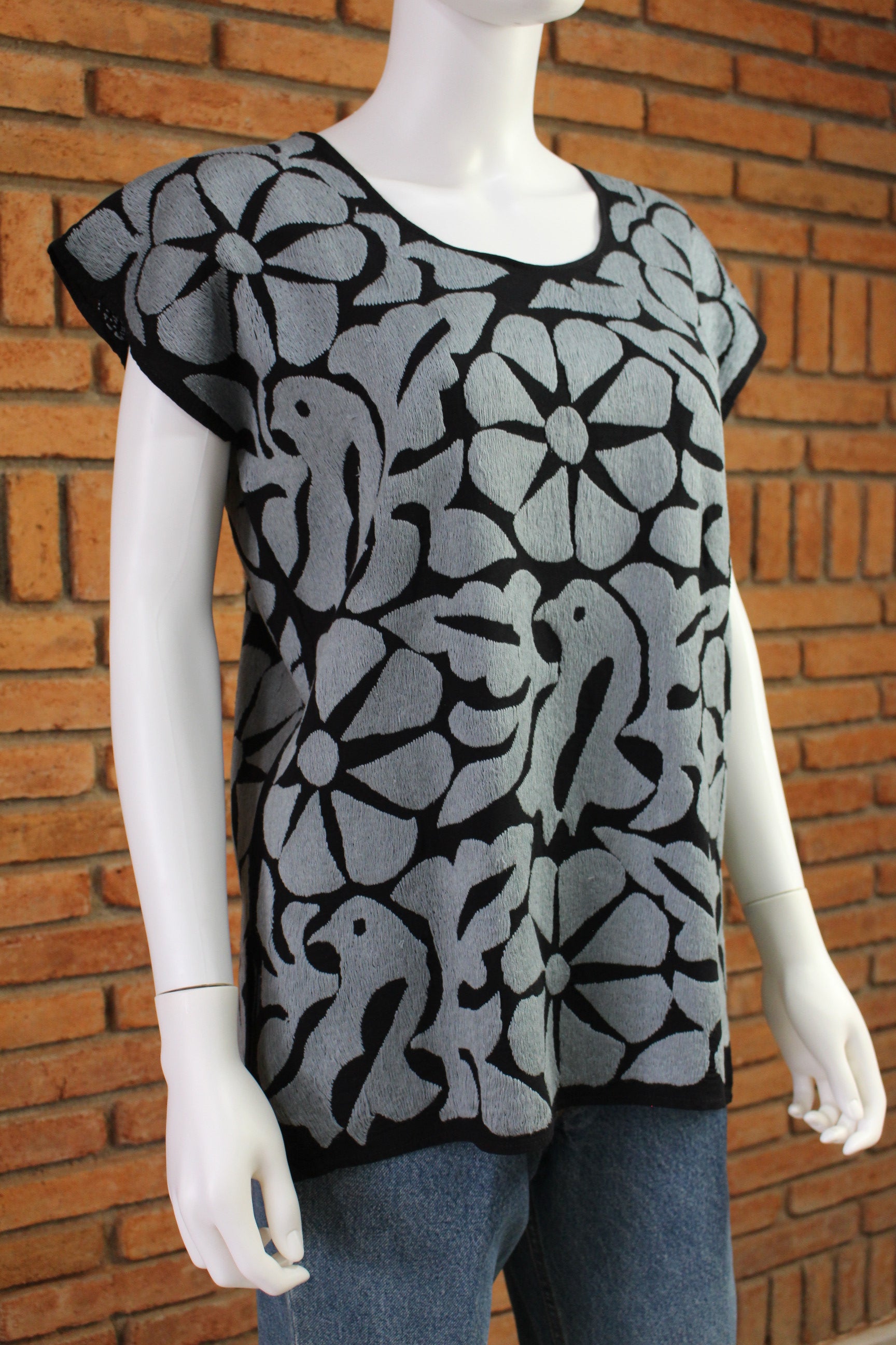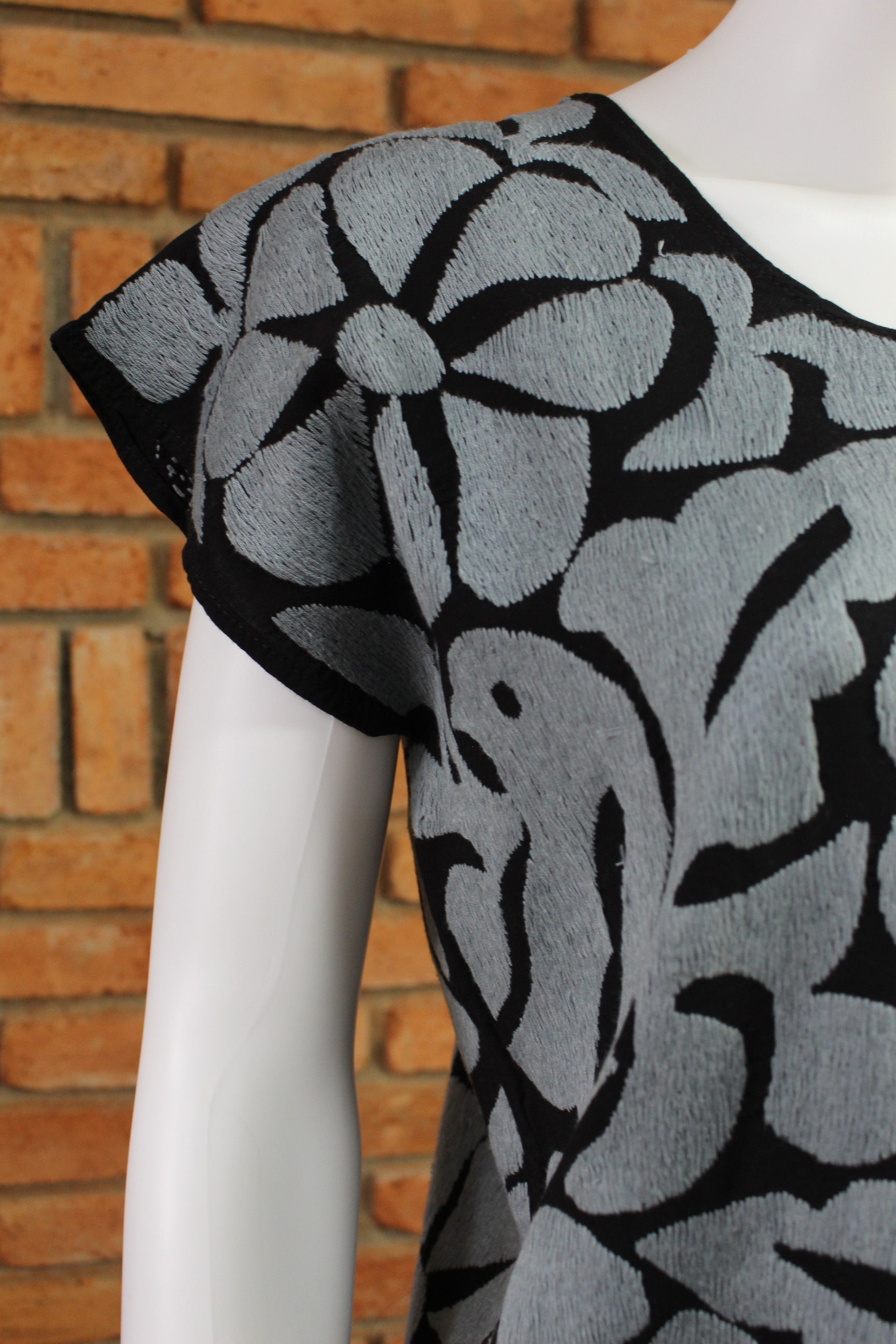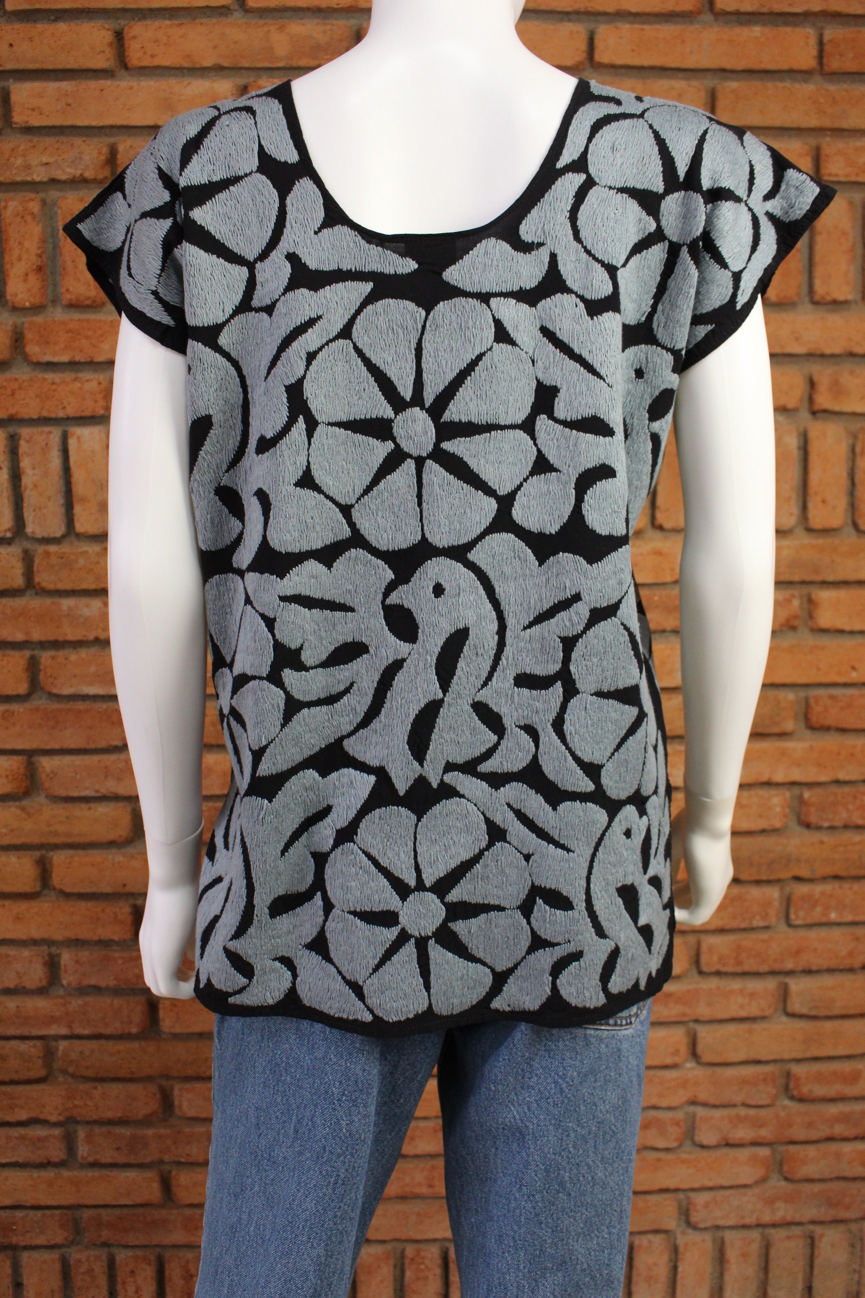 Hermosa Blusa hecha en tela rayón color negro bordada a mano con hilos de diferentes colores o de un solo color. Bordado en la parte de atrás y adelante, el bordado son flores y pájaros que representan el entorno de las poblaciones donde habitan las artesanas, es elaborada en Jalapa de Díaz, Oaxaca; manteniendo una actividad que se ha transmitido de generación en generación.