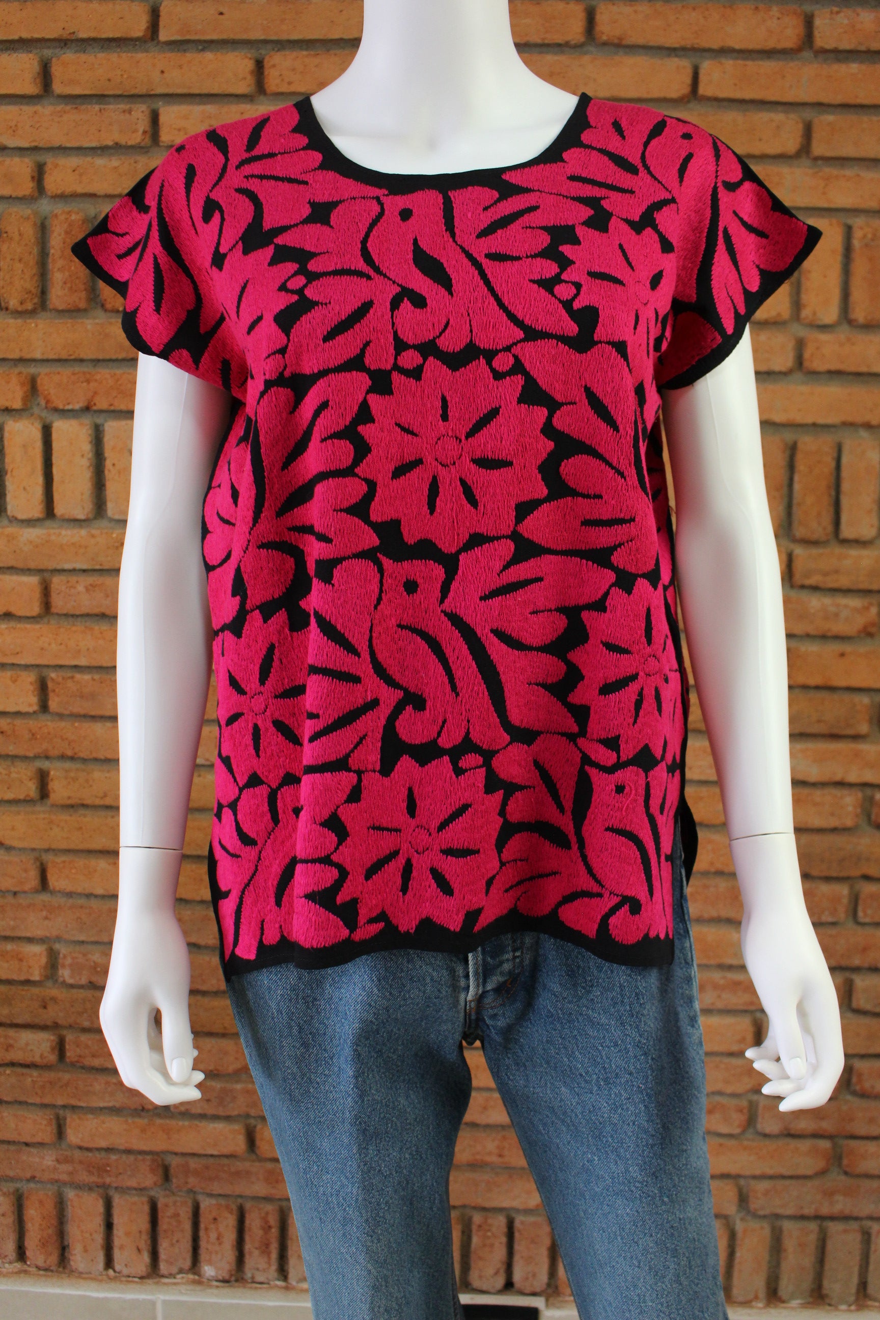 Blusa Bordada a Mano Negro con Fiusha Mod. Jalapa Unitalla.