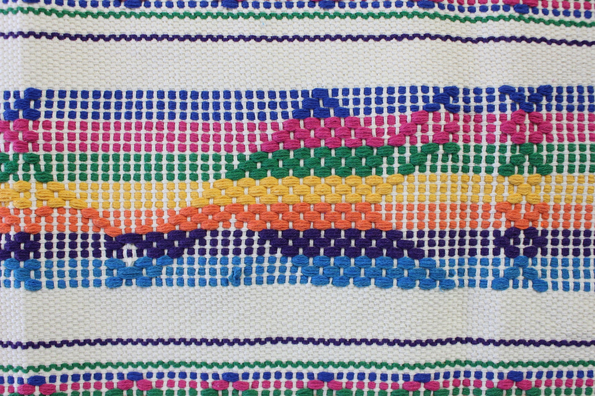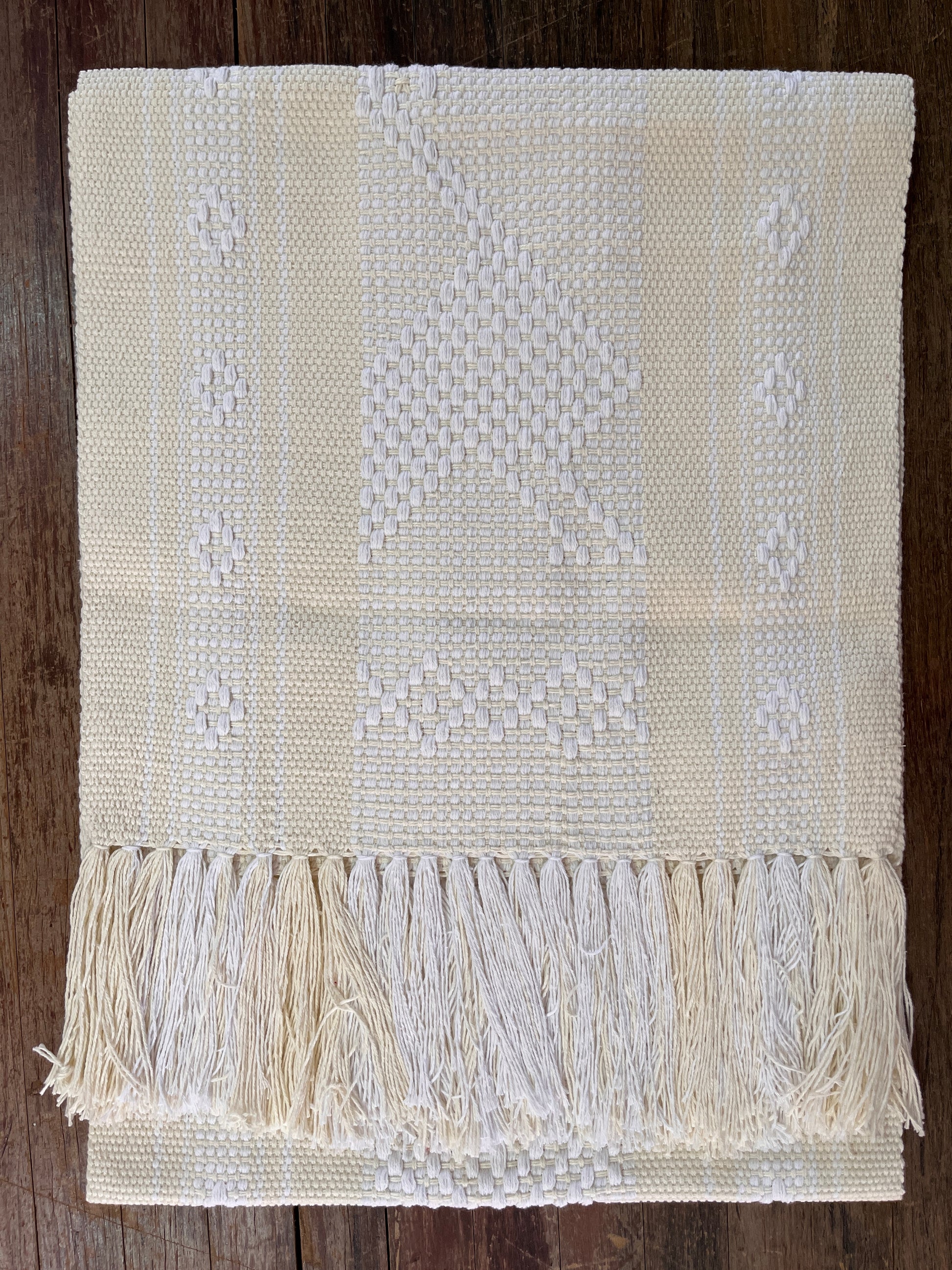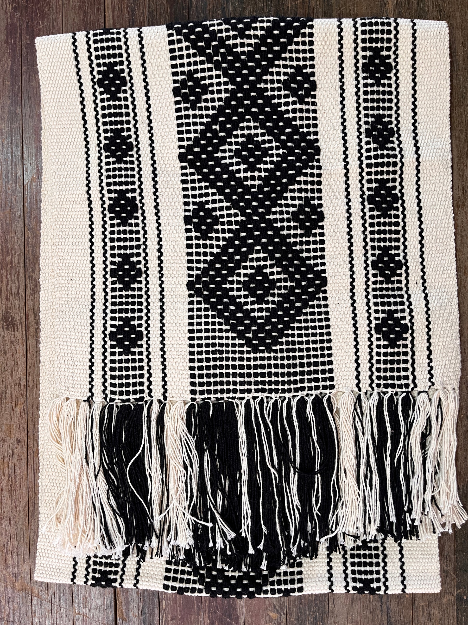 Elaborados en telar de cintura con hilos 100% algodón, color de base en diferentes colores, hecho por mujeres de los Valles Centrales de Oaxaca, esta técnica es una manera de trabajo que se tenia antes de la Colonia Mesoamericana.