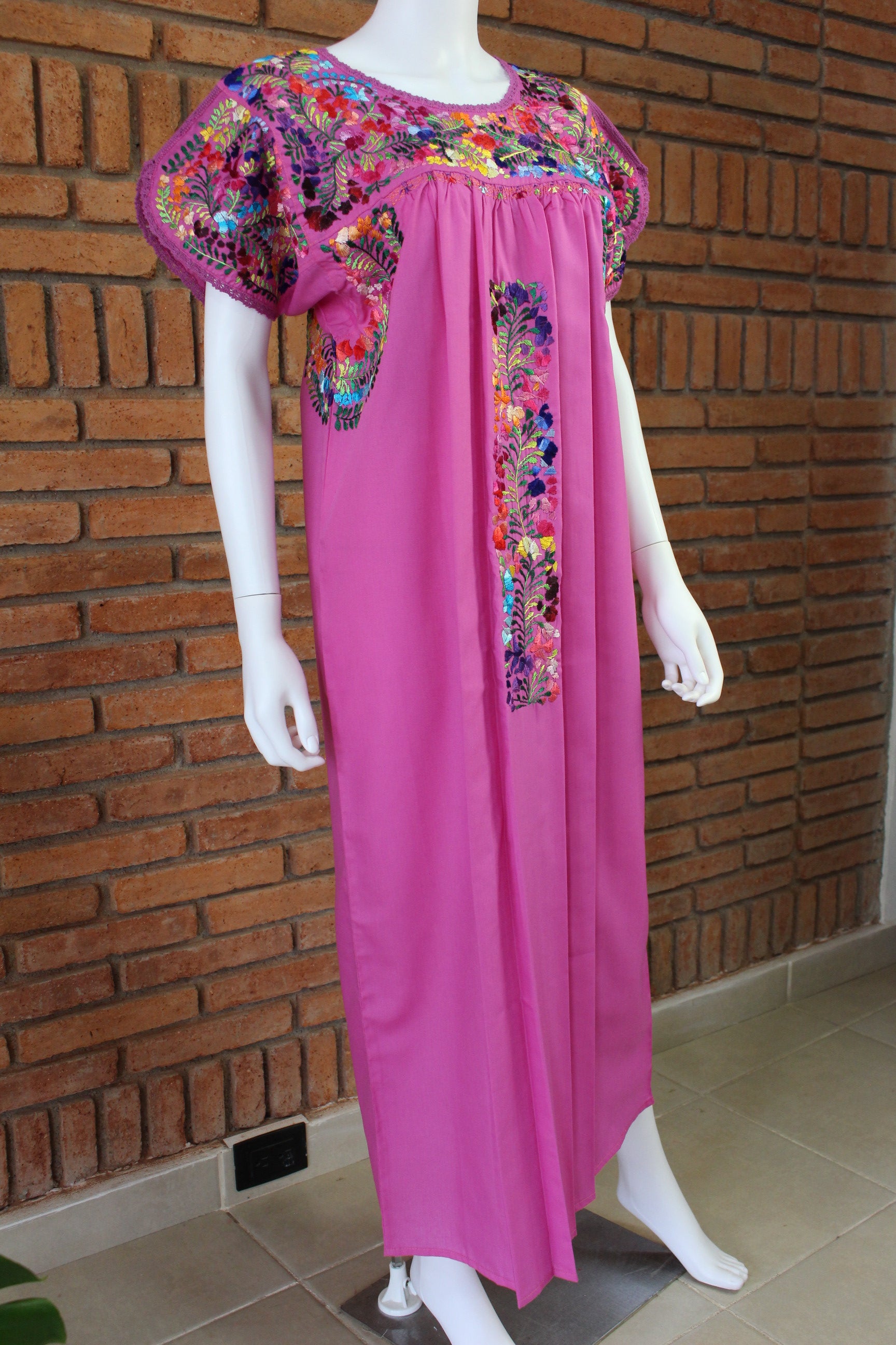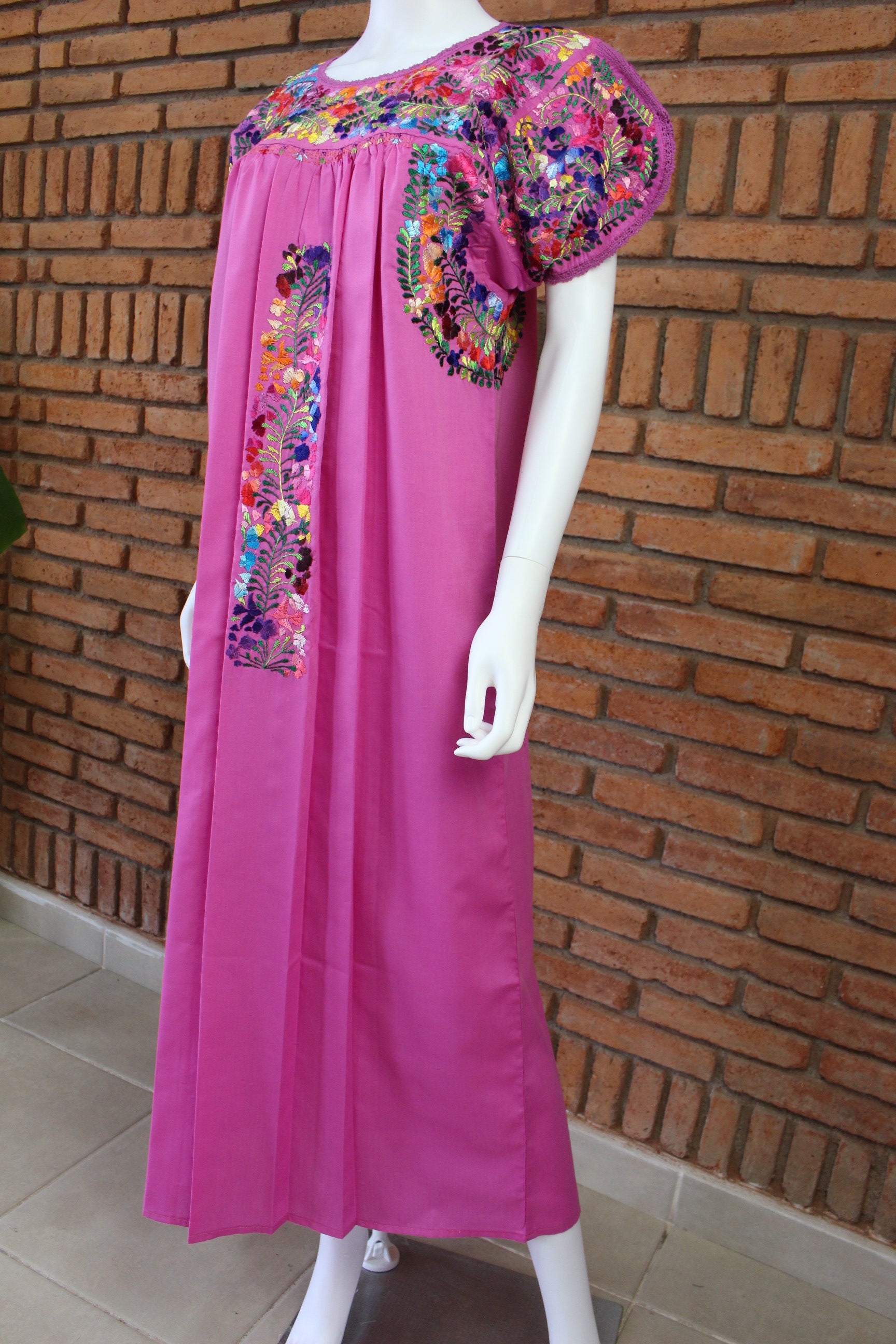 Vestido Bordado a Mano Rosa con Multicolor Mod. San Antonino Unitalla.