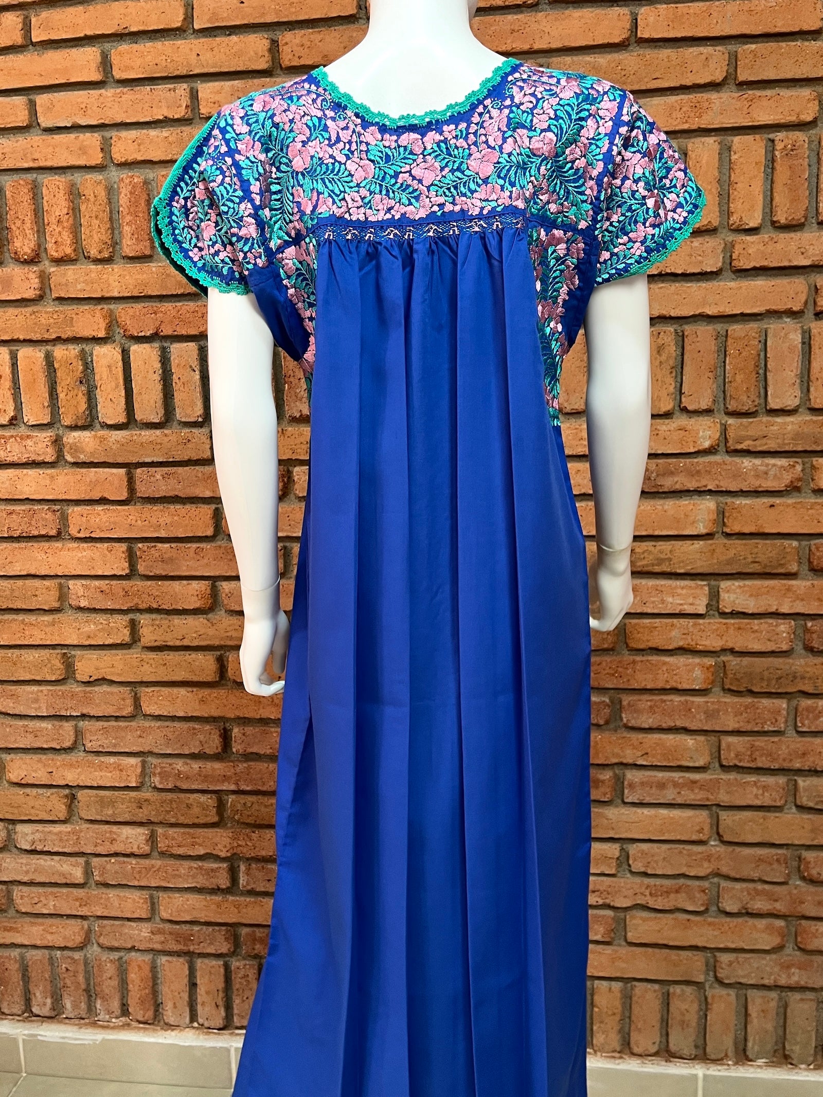 Vestido Bordado a Mano Azul Rey con Tonos Pastel Mod. San Antonino Unitalla.
