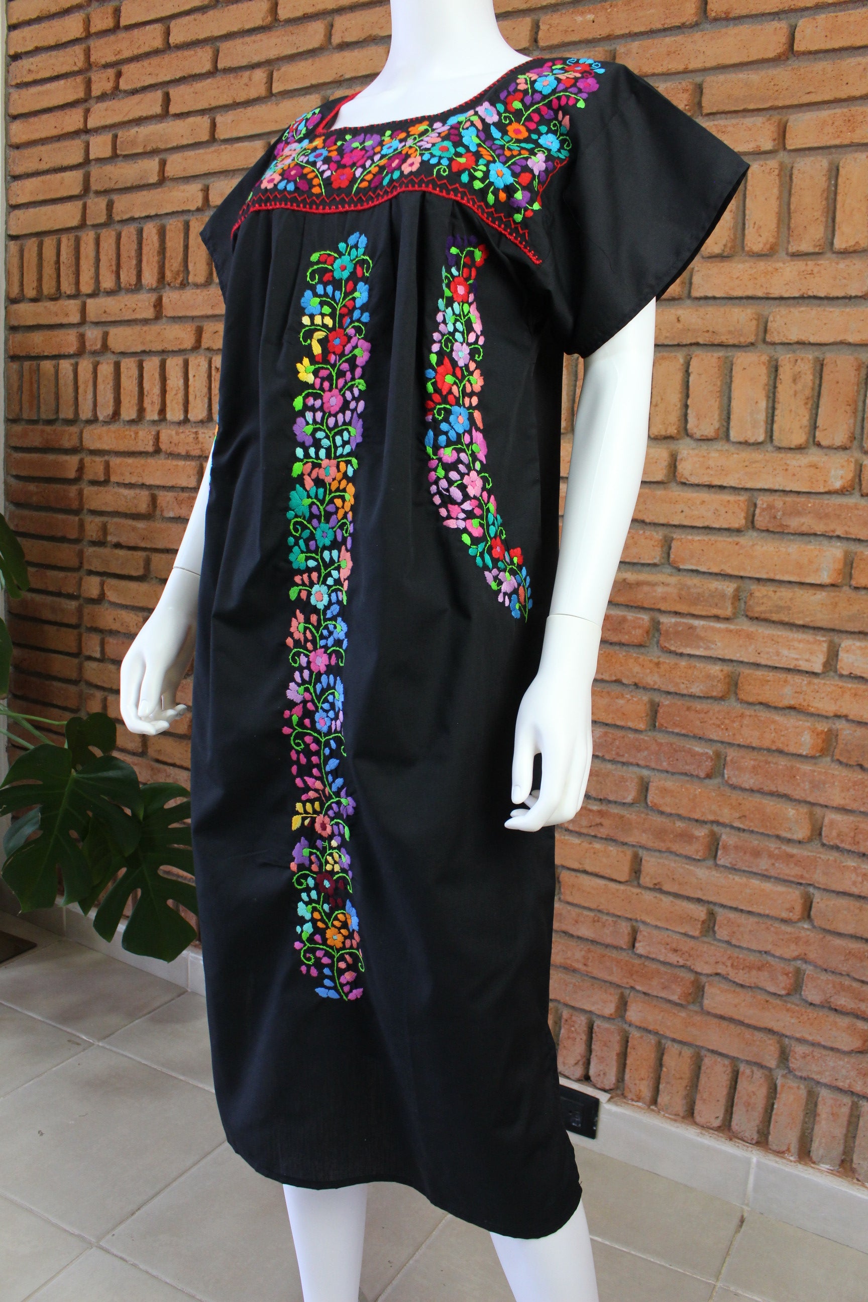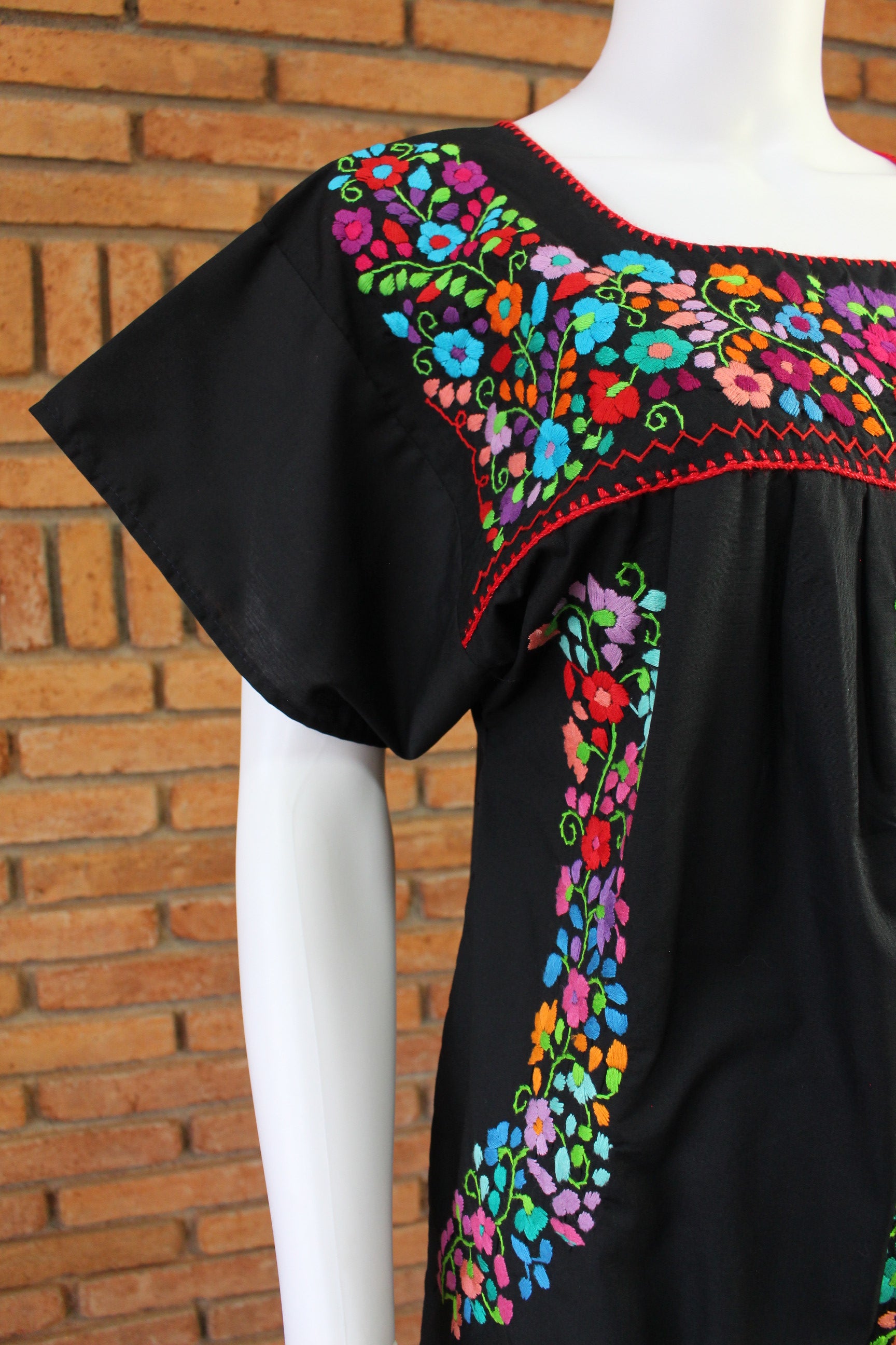 Hermoso vestido florecita Bordado a Mano en tela de popelina 50% algodón 50% poliéster con bordado multicolor, hechos por las manos de las mujeres artesanas de la región de la Mixteca Alta.