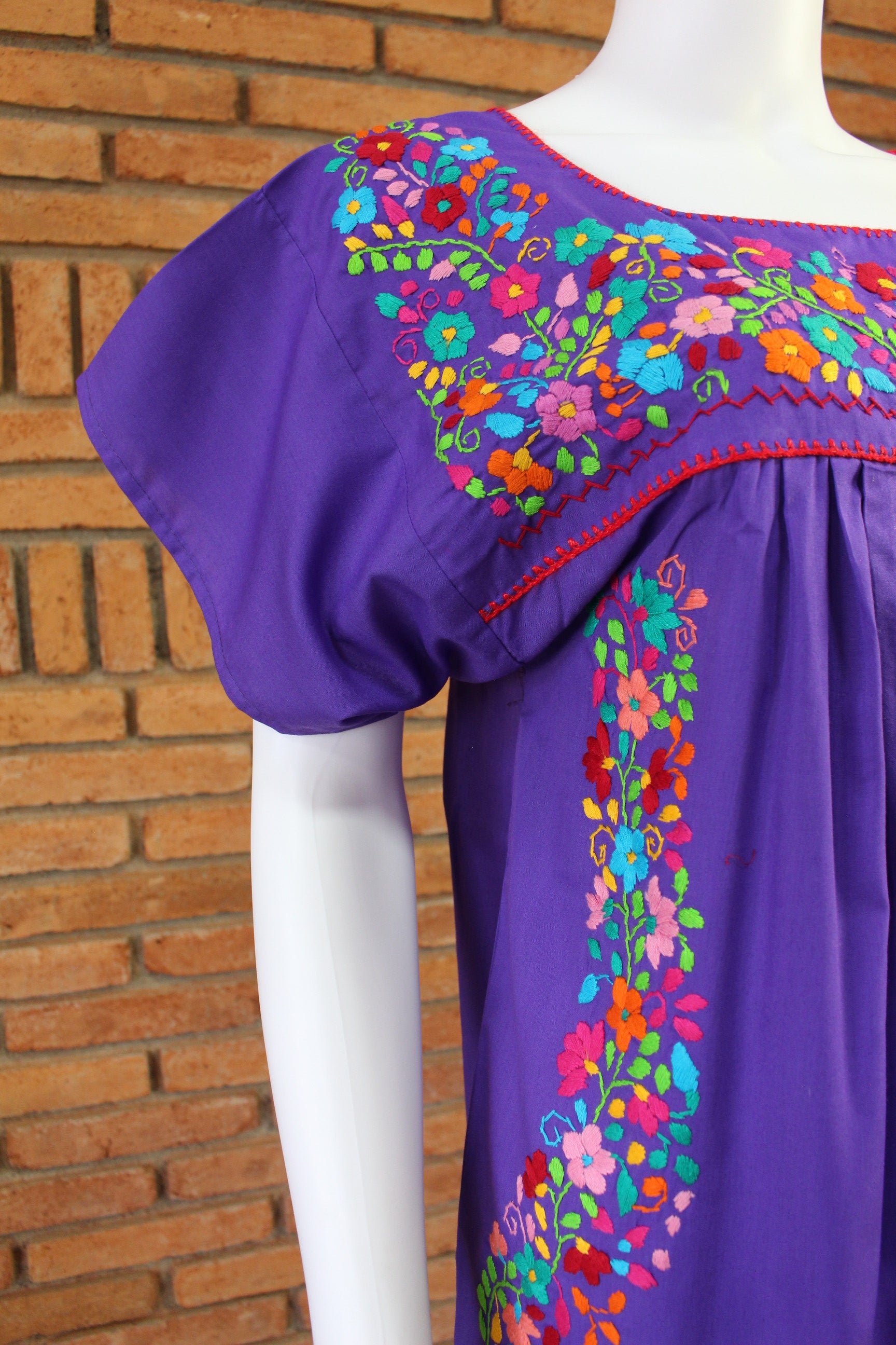 Vestido Mexicano Bordado a Mano Mod. Florecita Popelina Talla Mediana