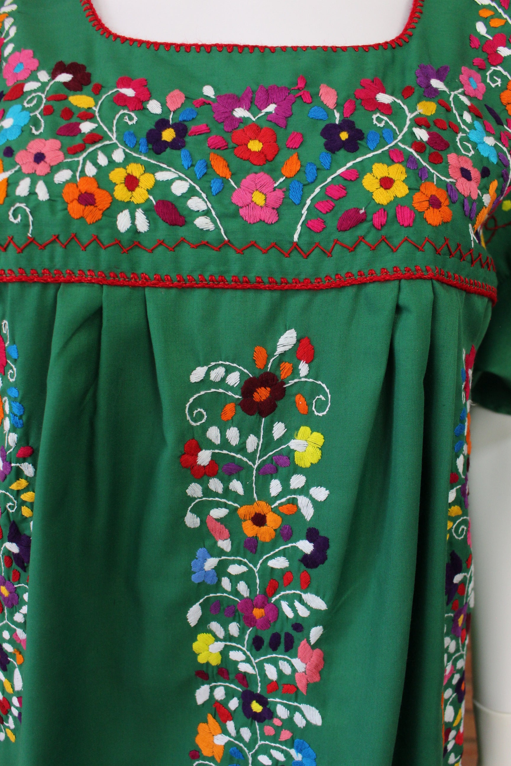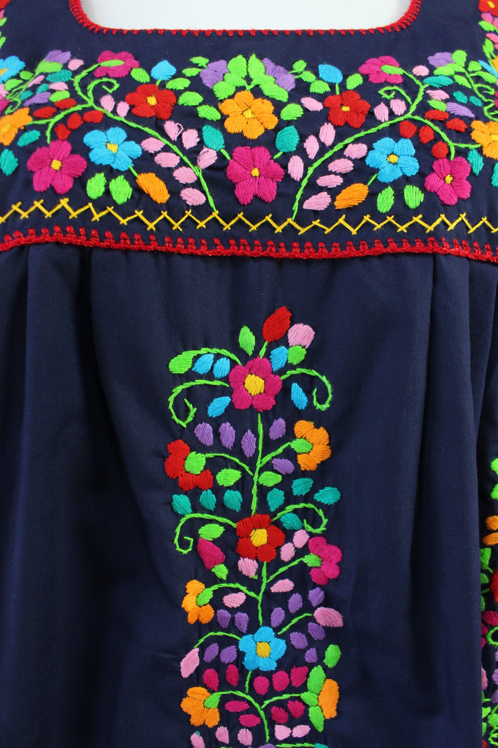 Hermoso vestido florecita Bordado a Mano en tela de popelina 50% algodón 50% poliéster con bordado multicolor, hechos por las manos de las mujeres artesanas de la región de la Mixteca Alta.