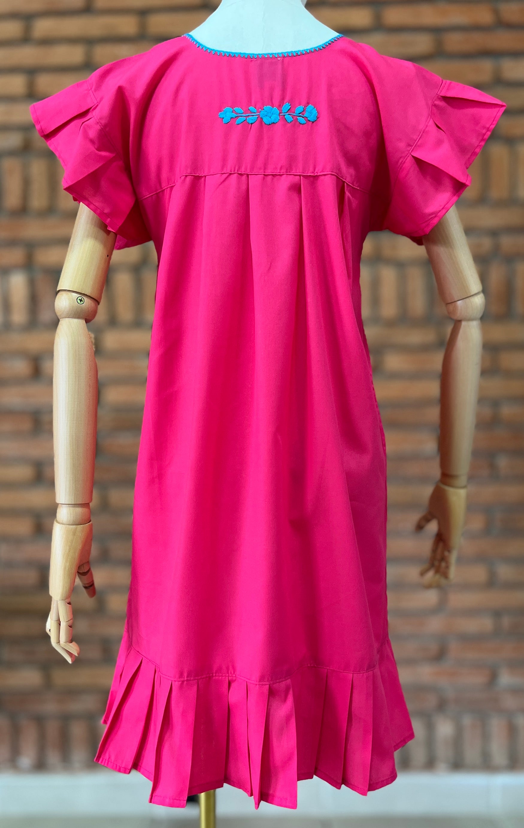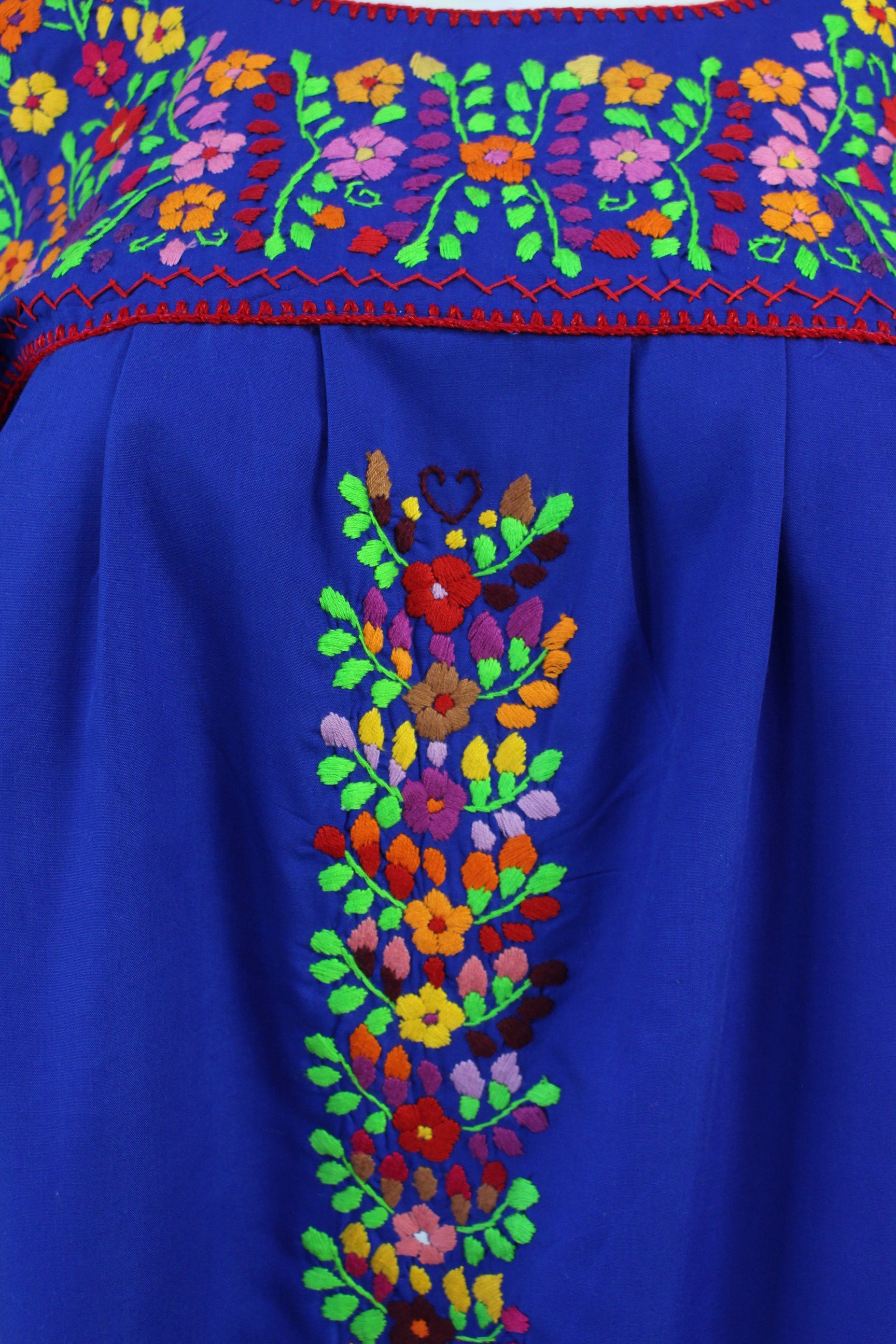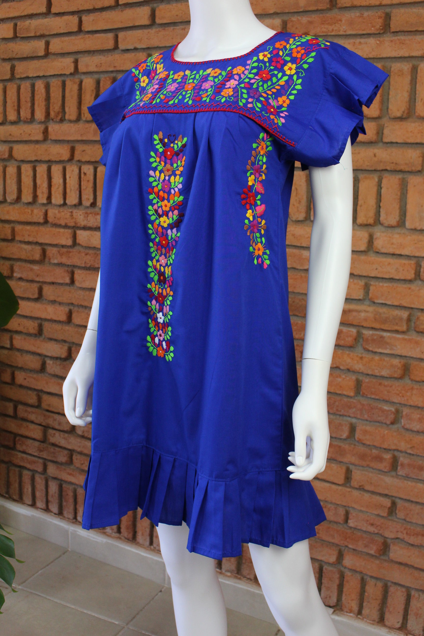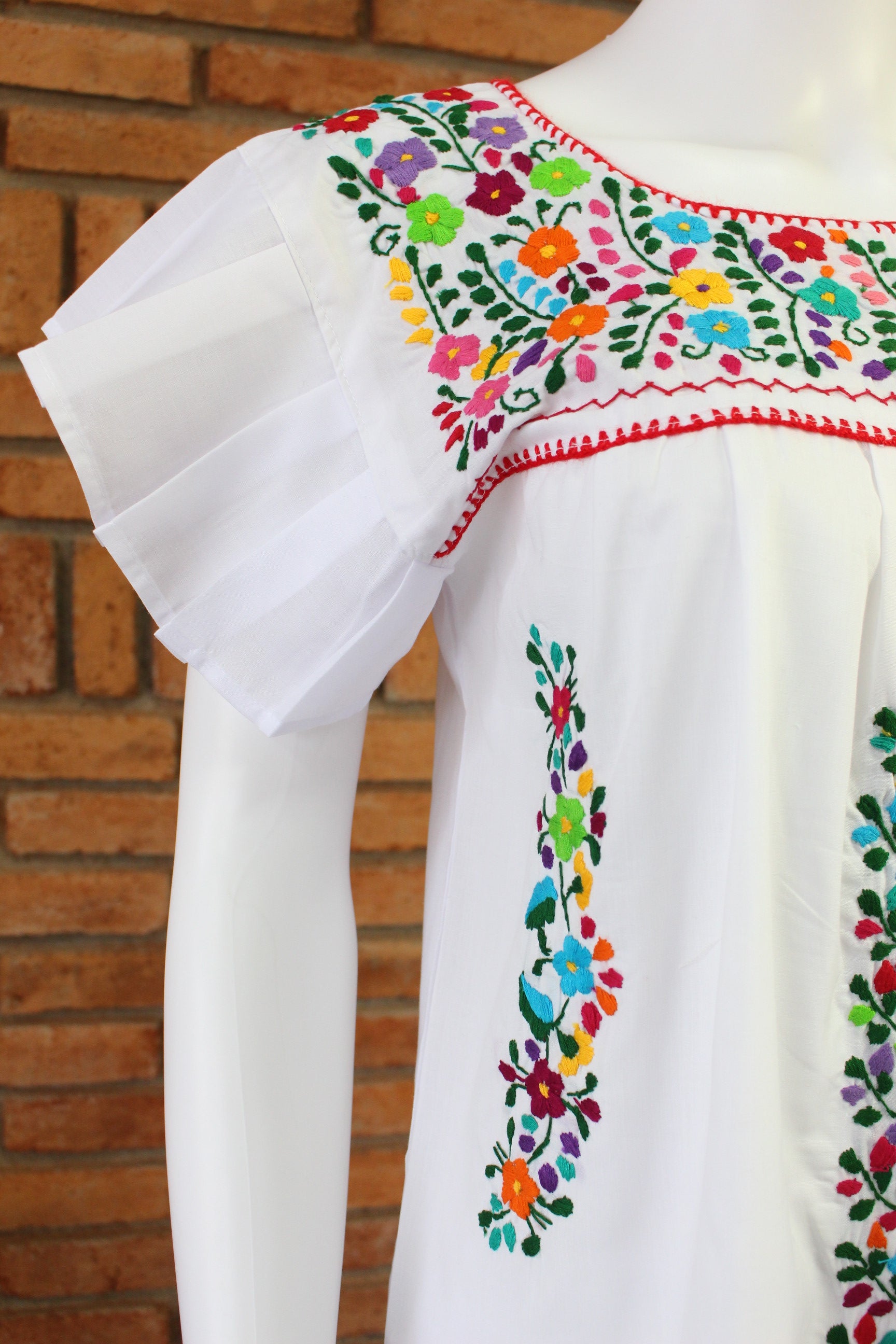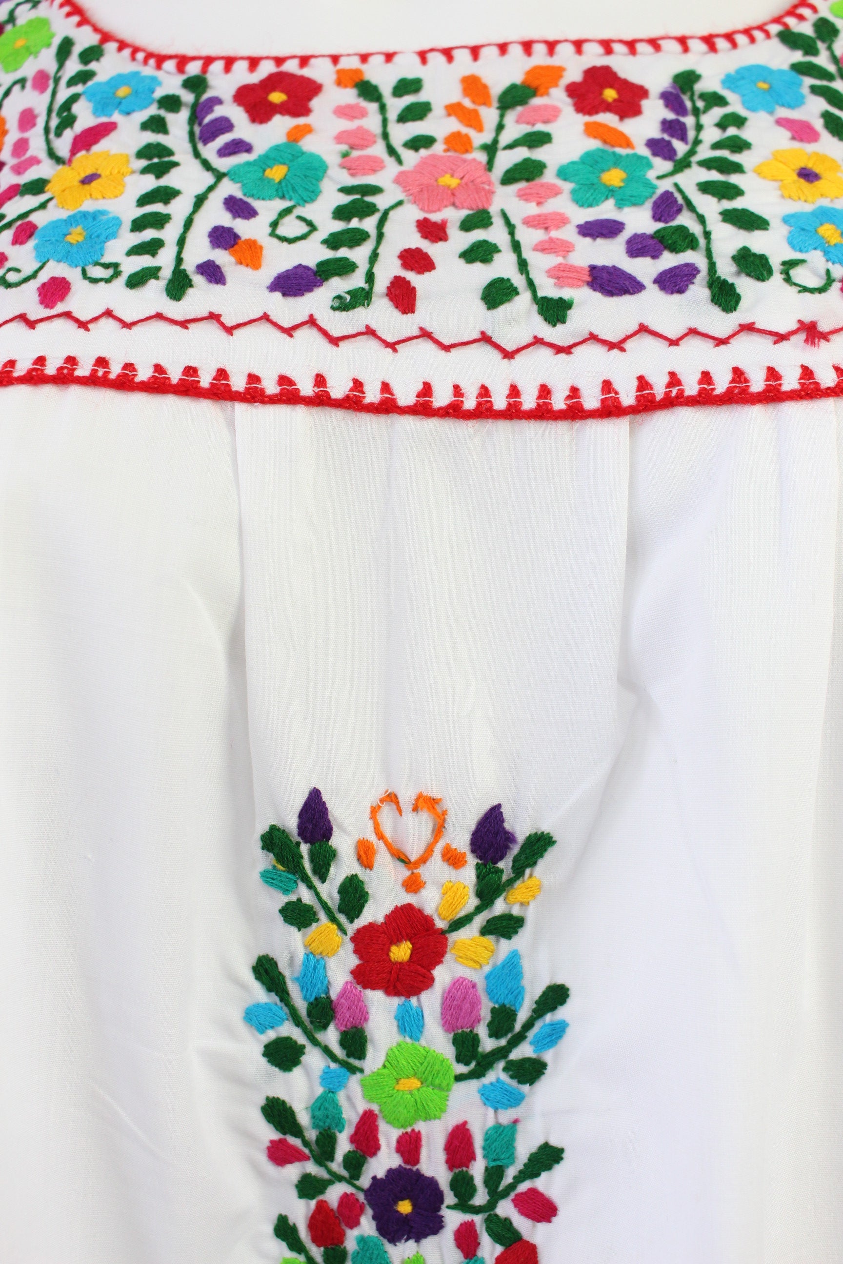 Vestido Mexicano Bordado a Mano Mod. Orquidea Popelina Talla Chica. (Multicolores)