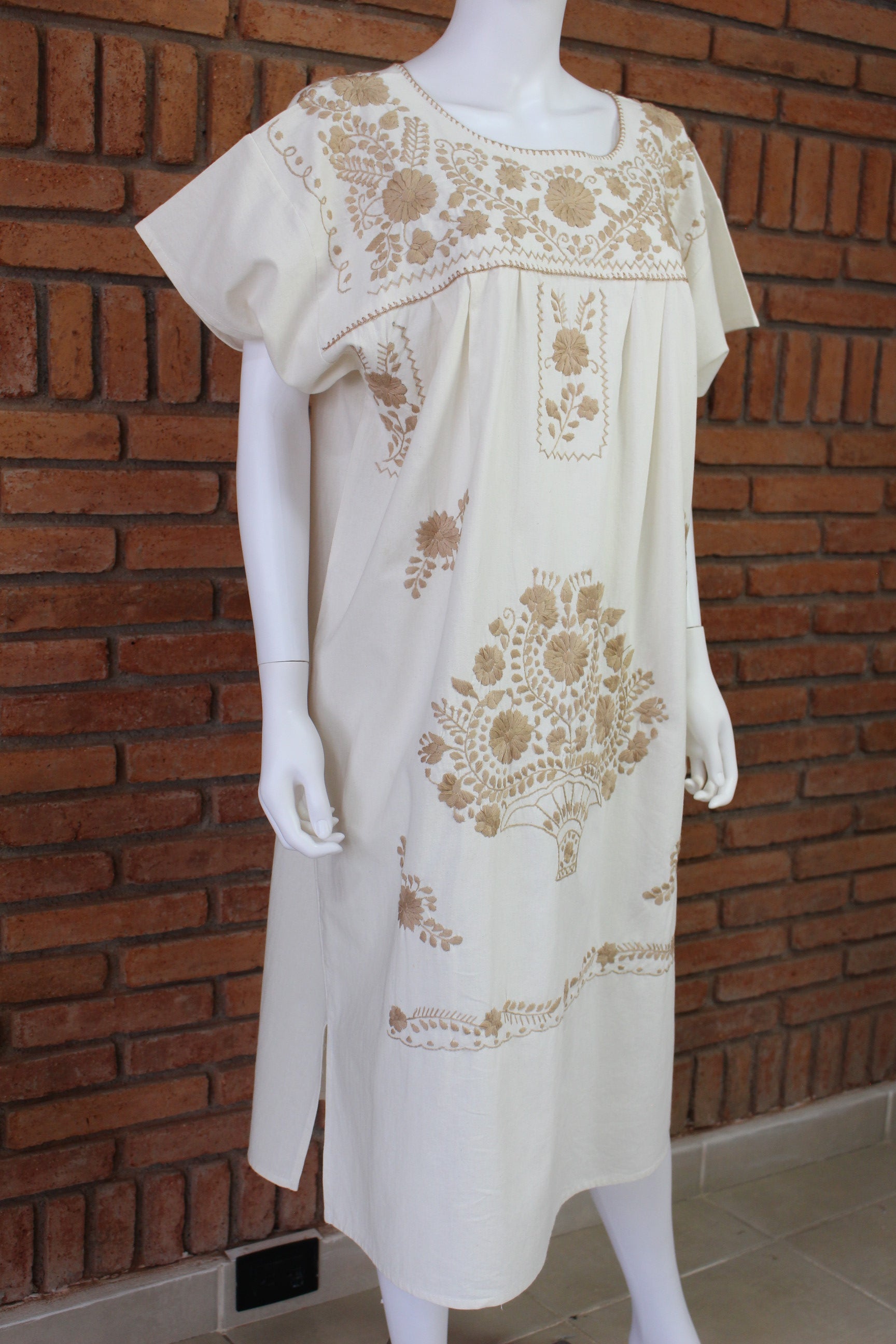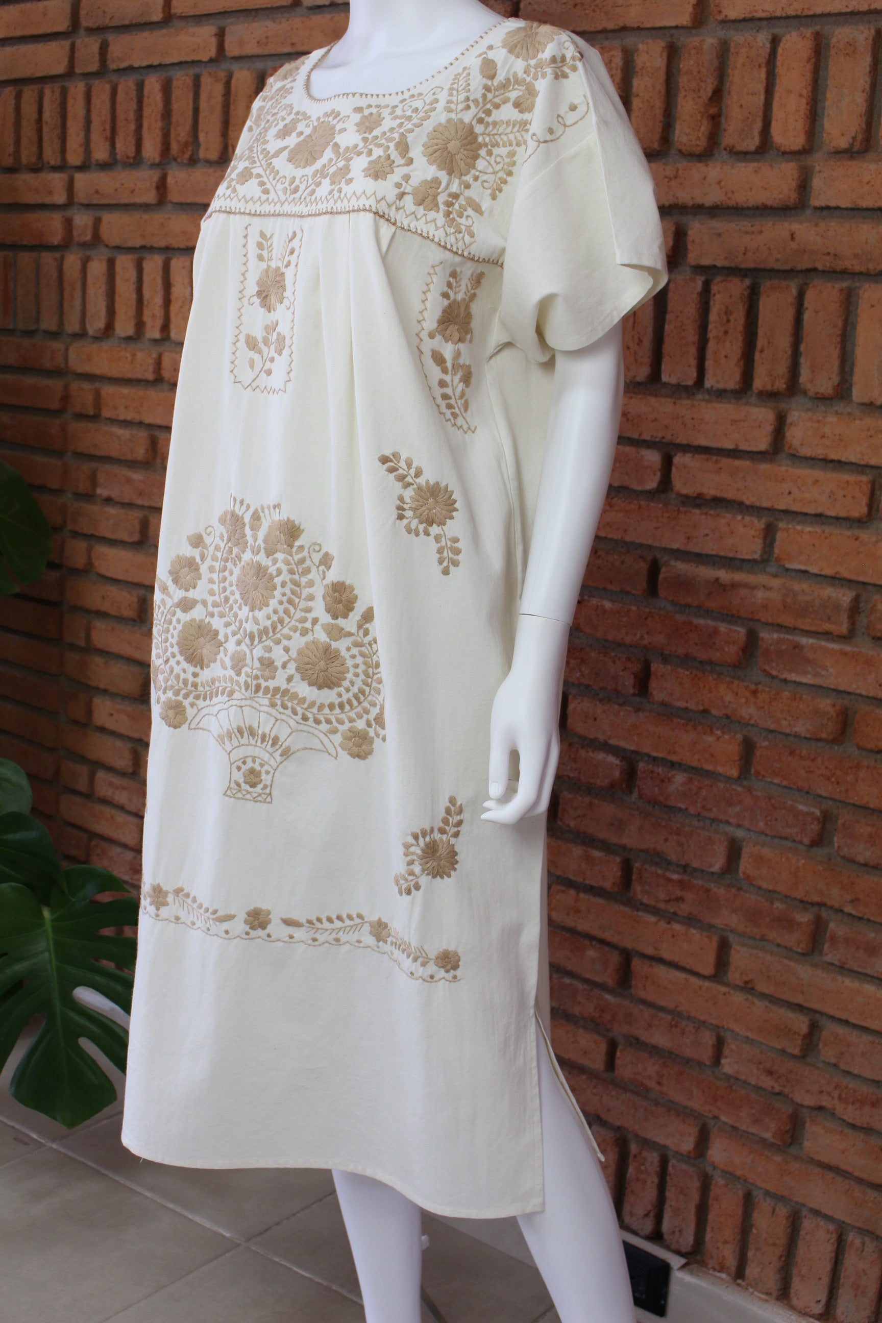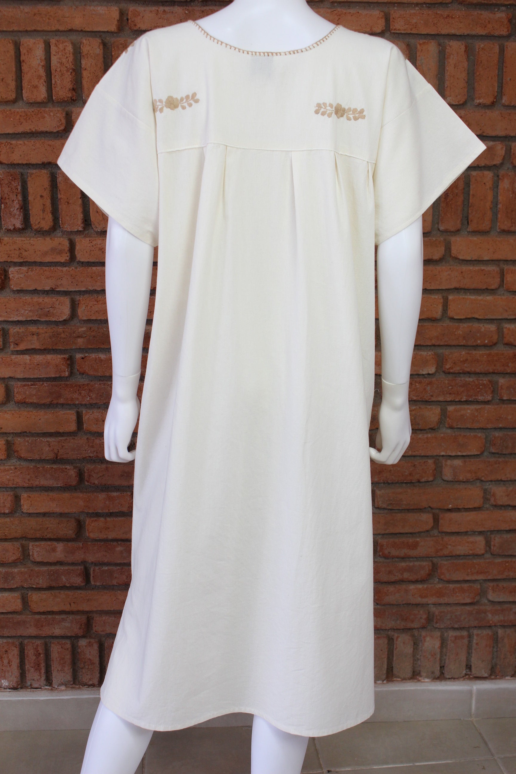 Vestido Mexicano Manta Bordado a Mano Talla L