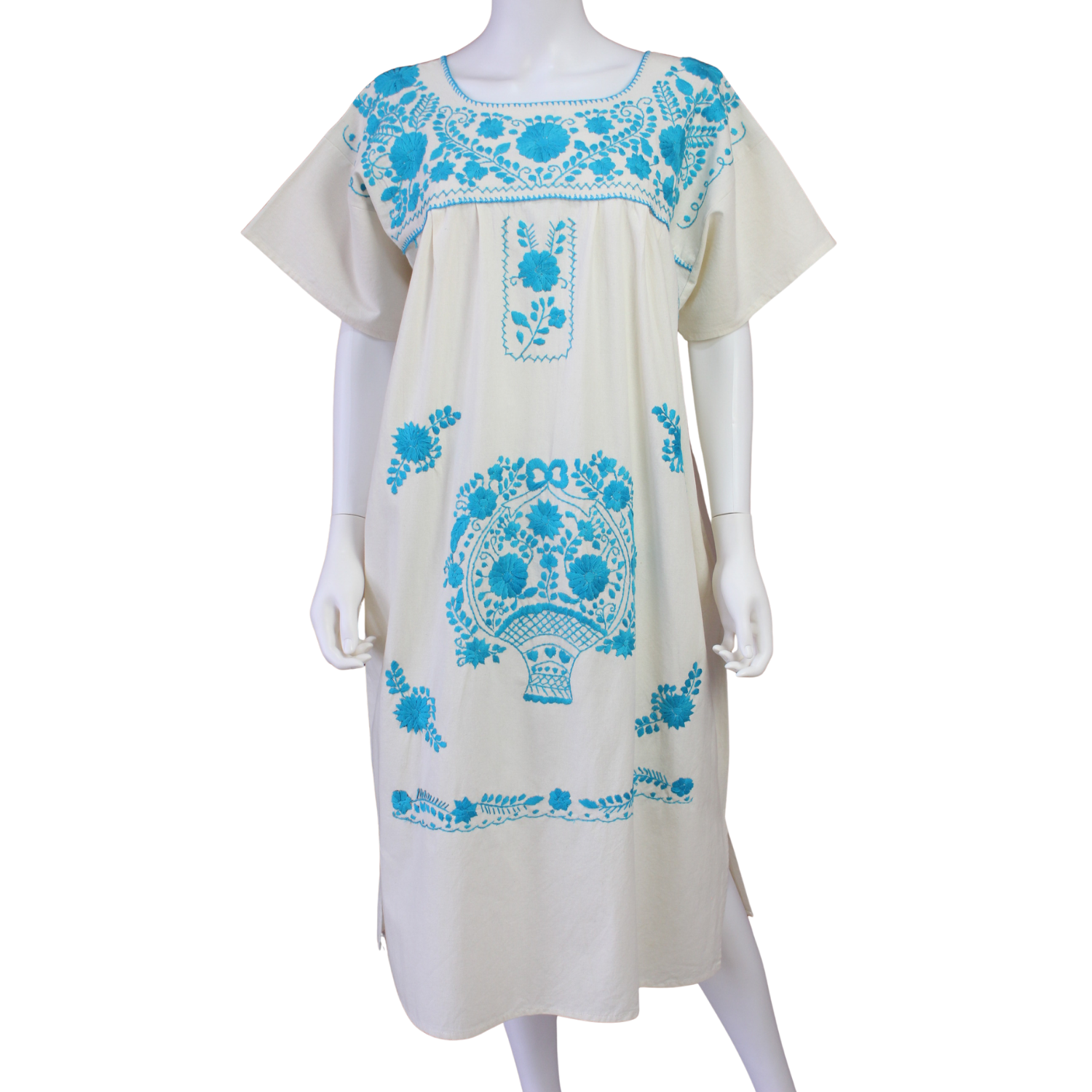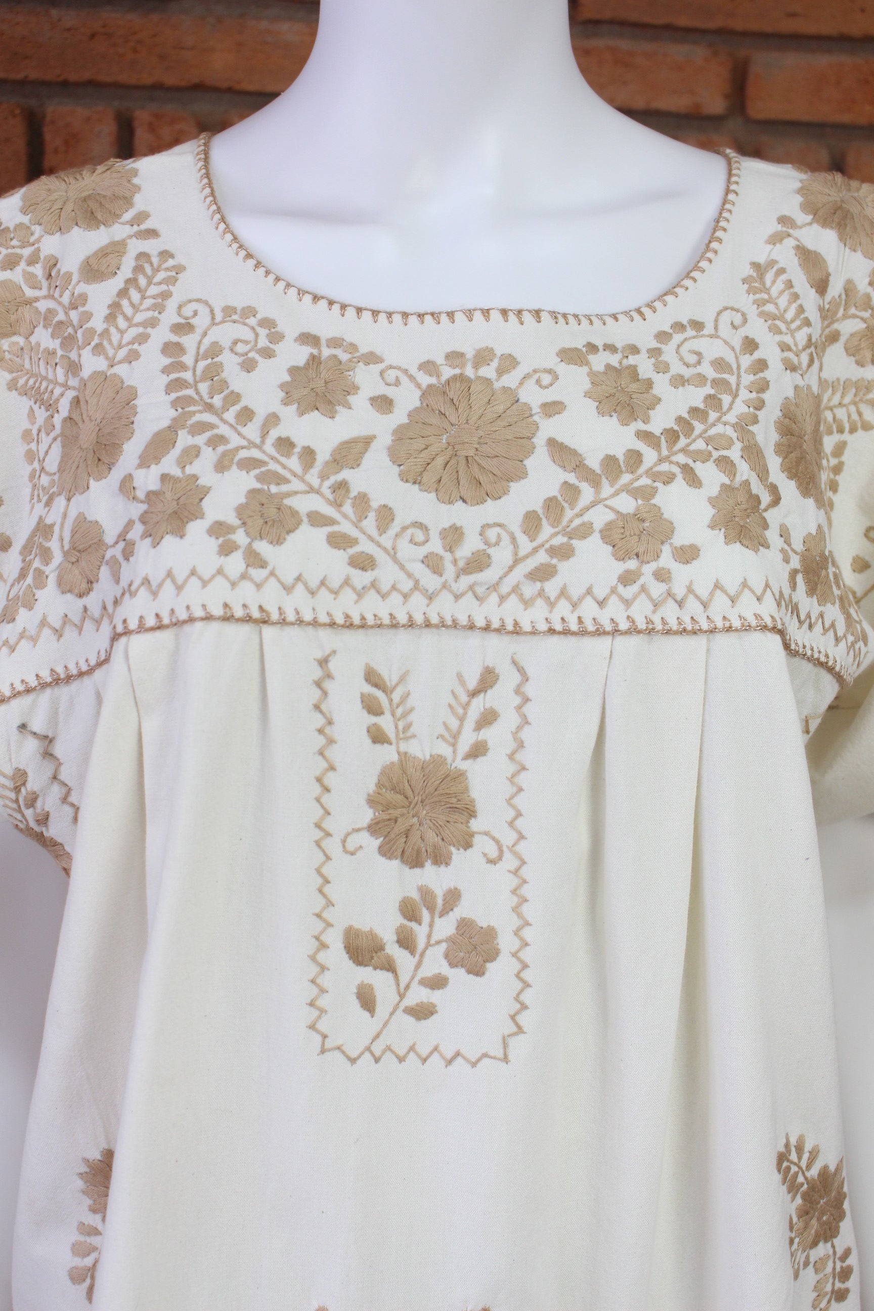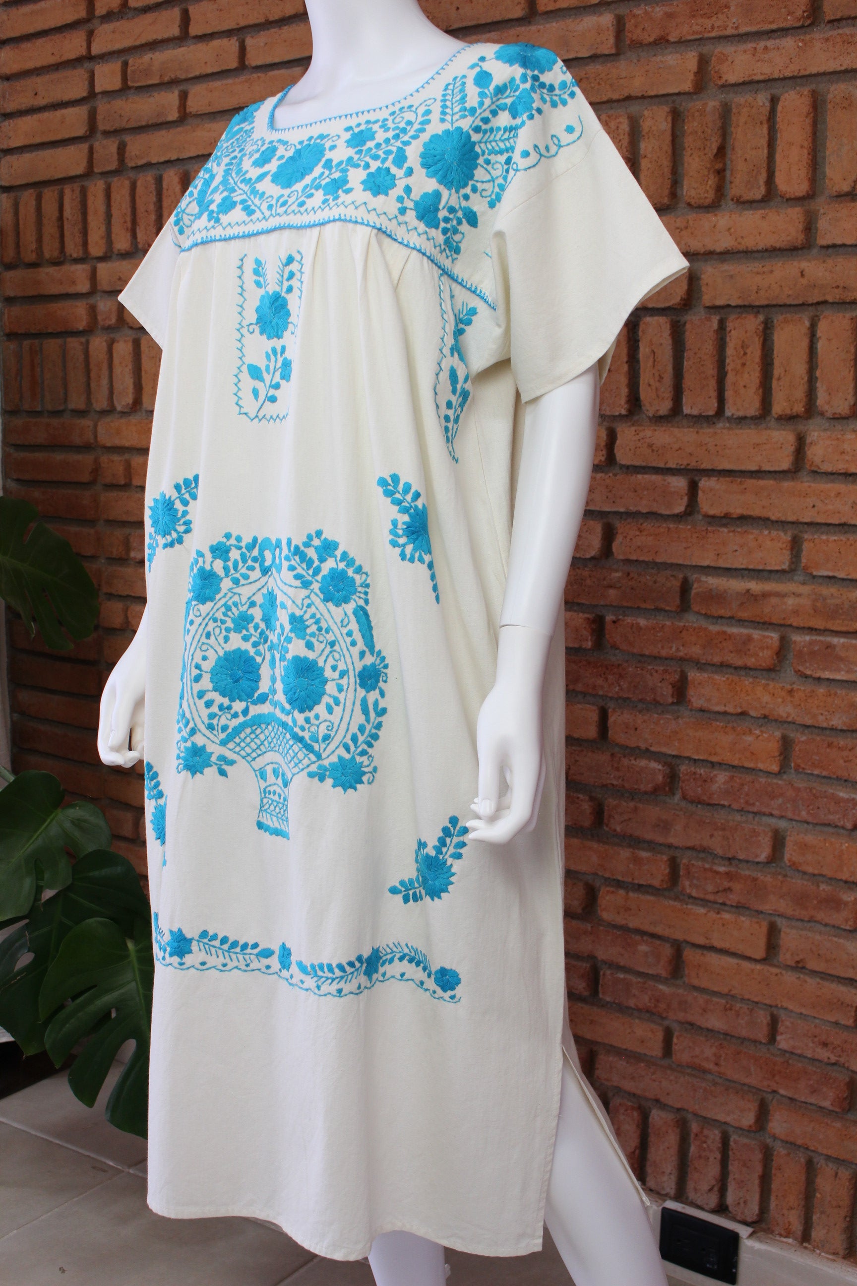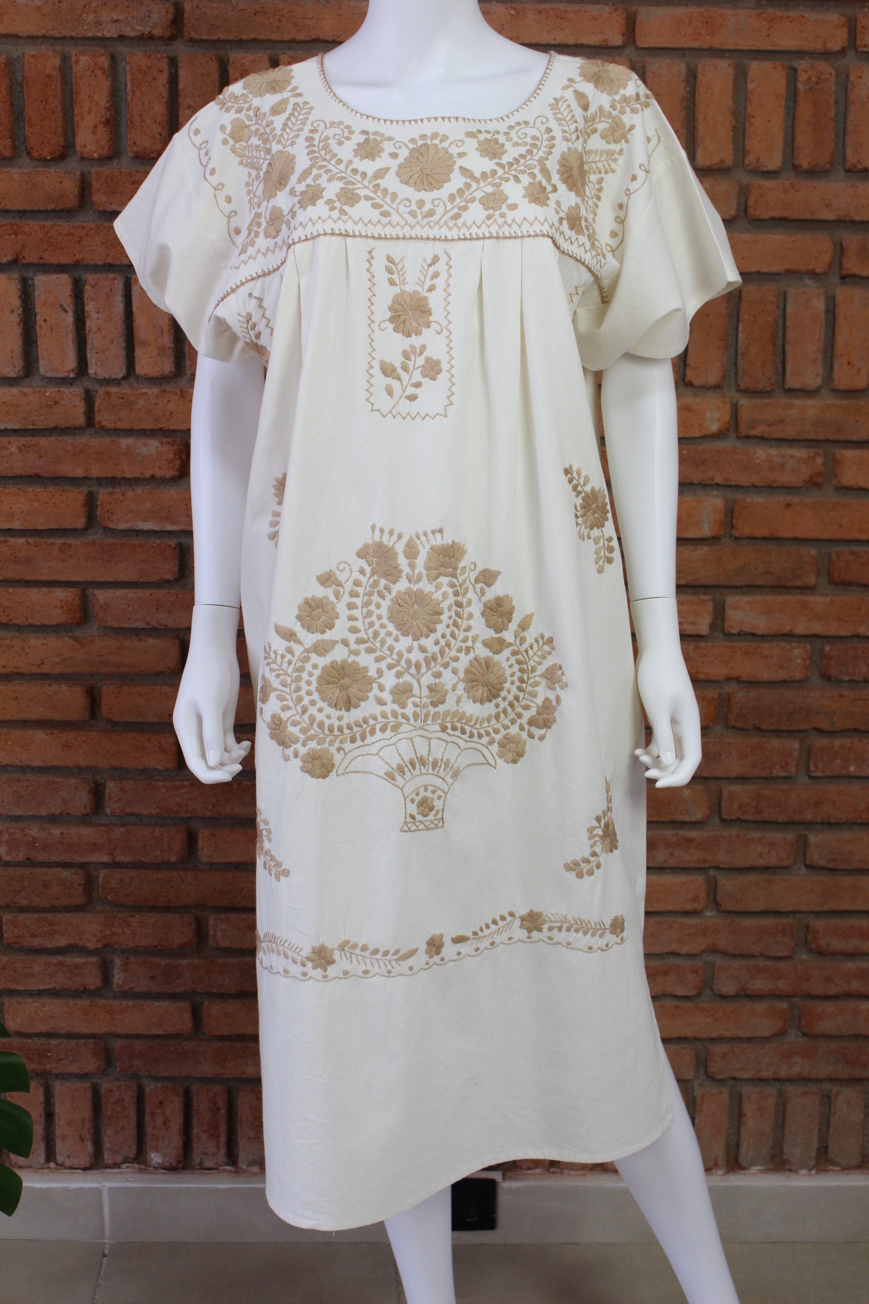 Vestido Mexicano Manta Bordado a Mano Talla L